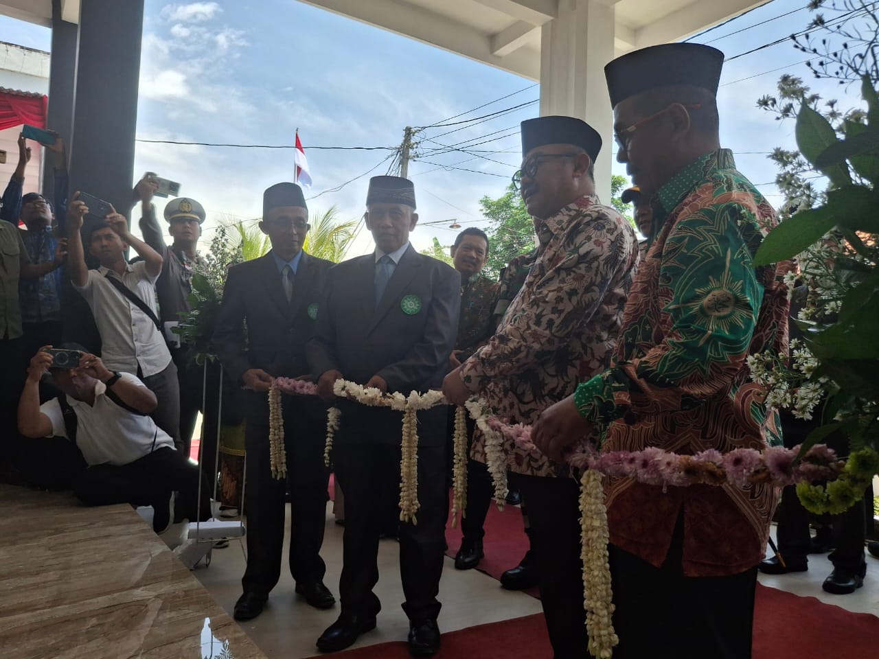 JP/Nia POTONG PITA : Mendikdasmen Abdul Mu'ti memotong pita menandai peresmian gedung SMK Muhammadiyah Purwodadi, Sabtu (24/1).